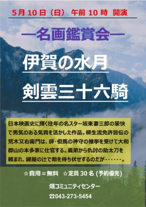 日時:5月31日(日)14時開演 場所:畑コミュニティセンター 体育館 入場無料・予約不要 持ち物:上履き