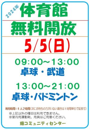 コロナの状況を見ながら数回なんとか開催致しましたが、感染状況の拡大を鑑み、 1/25 新型コロナ感染症拡大防止の為、以降 開催中止となりました。 ご参加ご希望の方々には誠に申し訳ございません。 畑コミュニティセンター […]