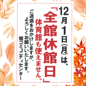 大好評につき 追加開催決定!!!!ご予約受付中!銚子電鉄応援事業!「電車を止めるな!」上映会 ぜひ映画を見て、開業100周年をむかえた銚子電鉄を応援してください!畑コミュニティセンターも応援します!!(映画『電車を止める […]